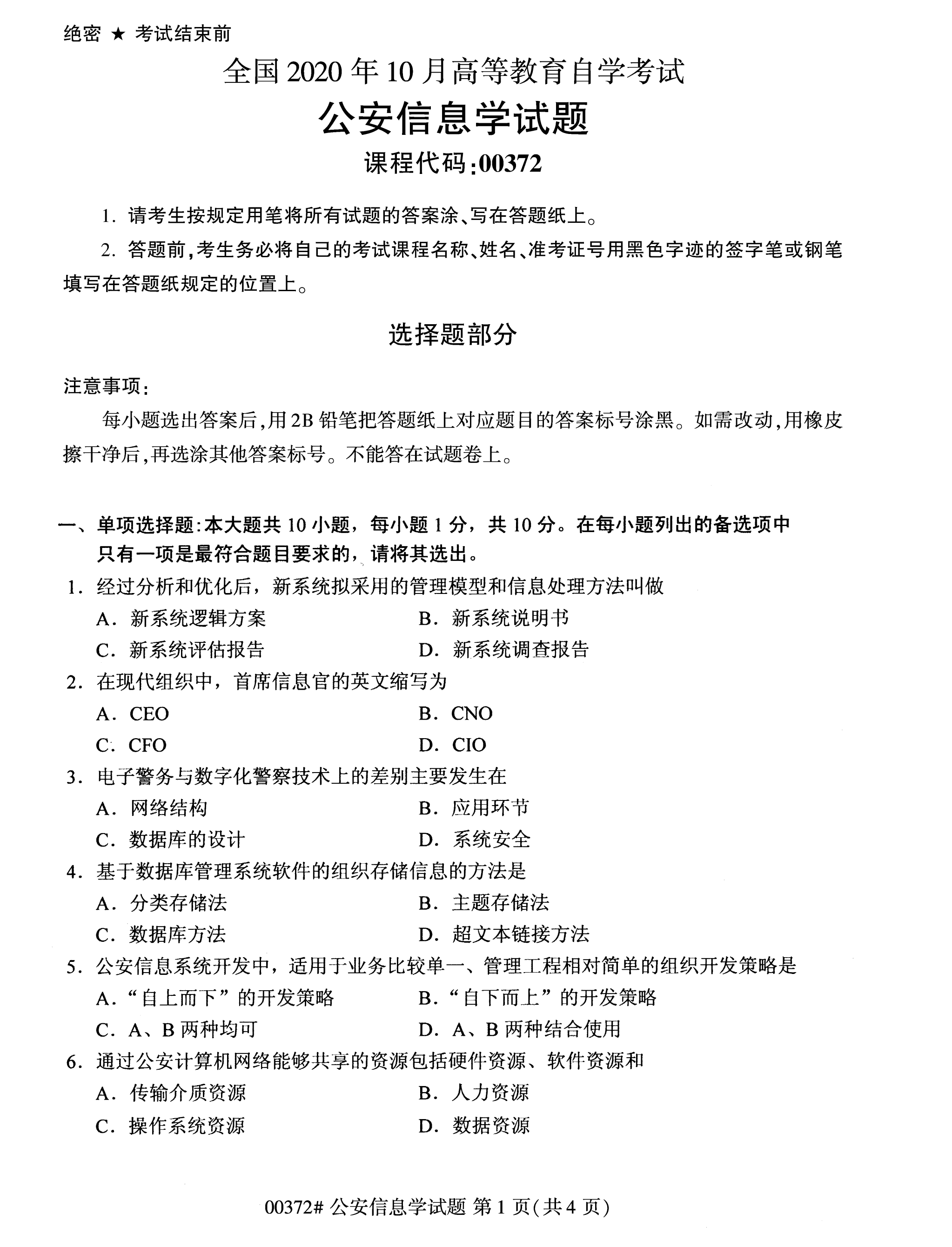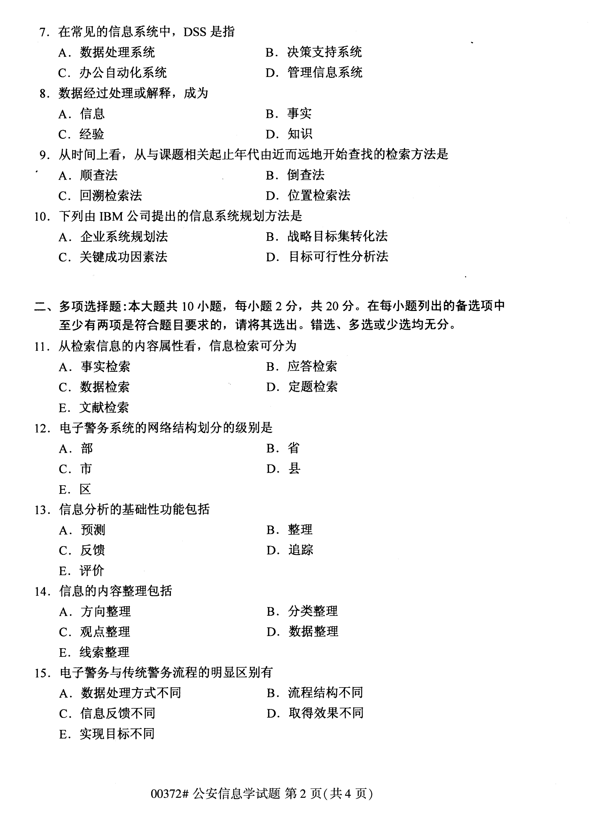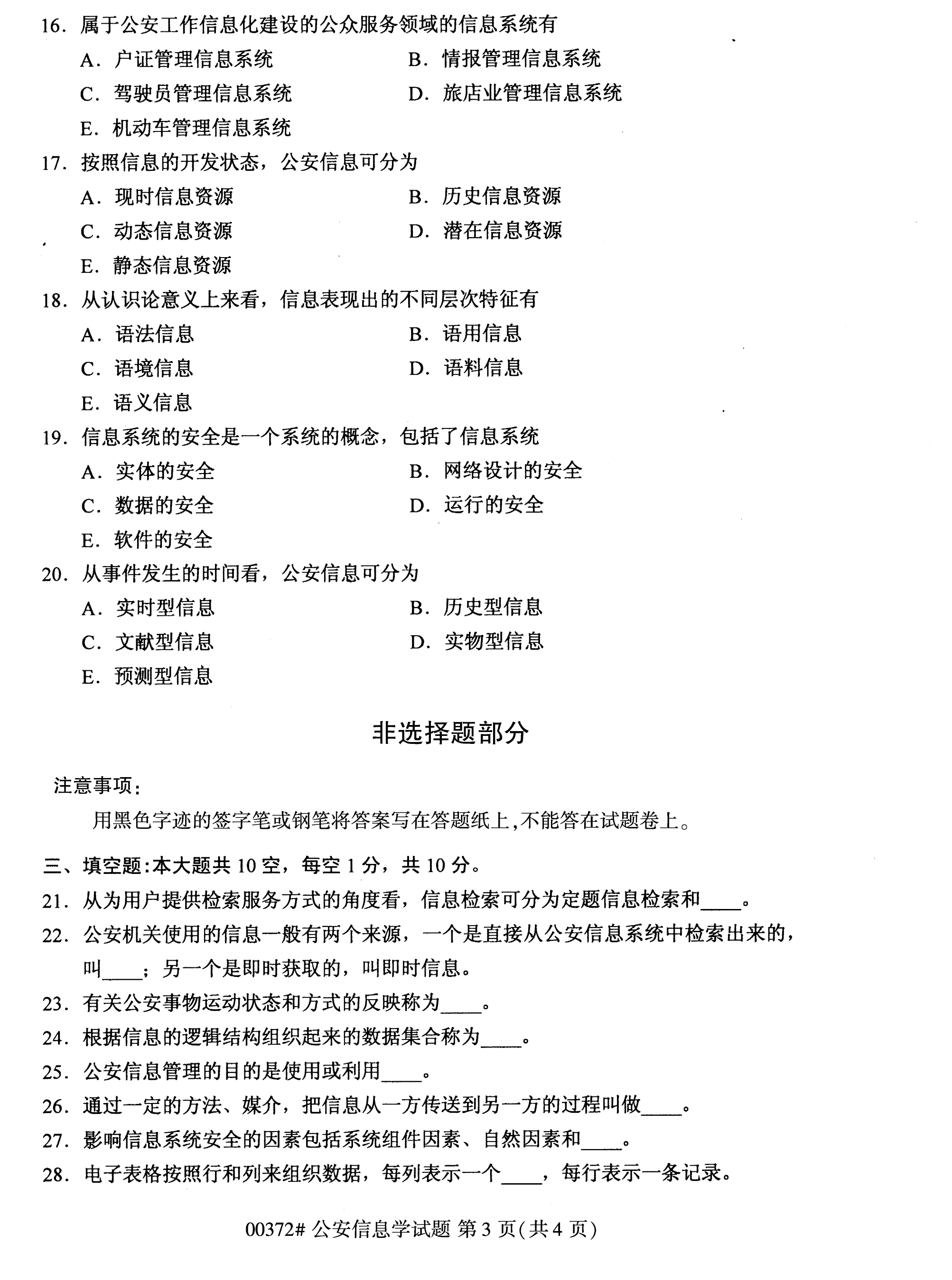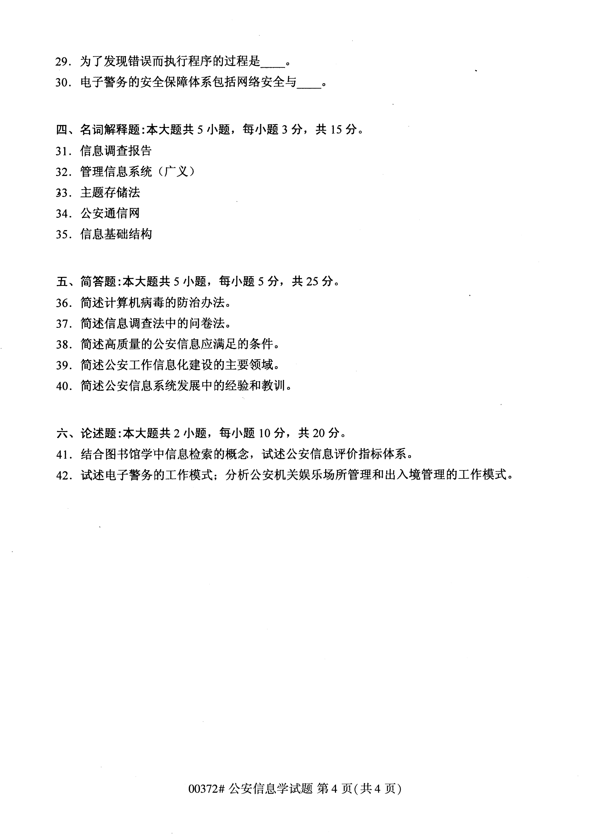 福建自考全國卷公安信息學(xué)(00372)試題