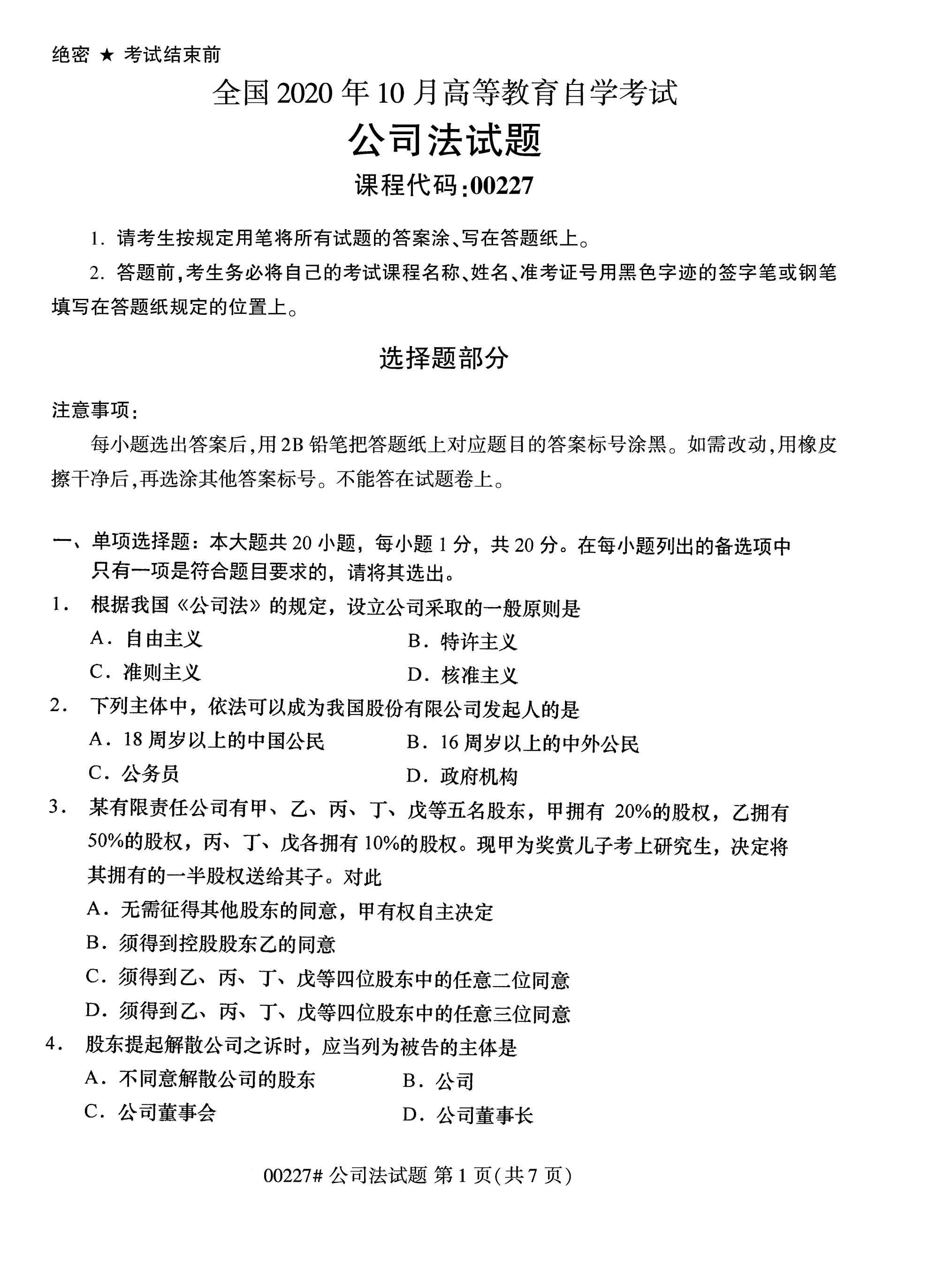 所在位置:福建自考網(wǎng) > 試題題庫 > 自考試題 > 福建自考全國卷公司法(00227)試題