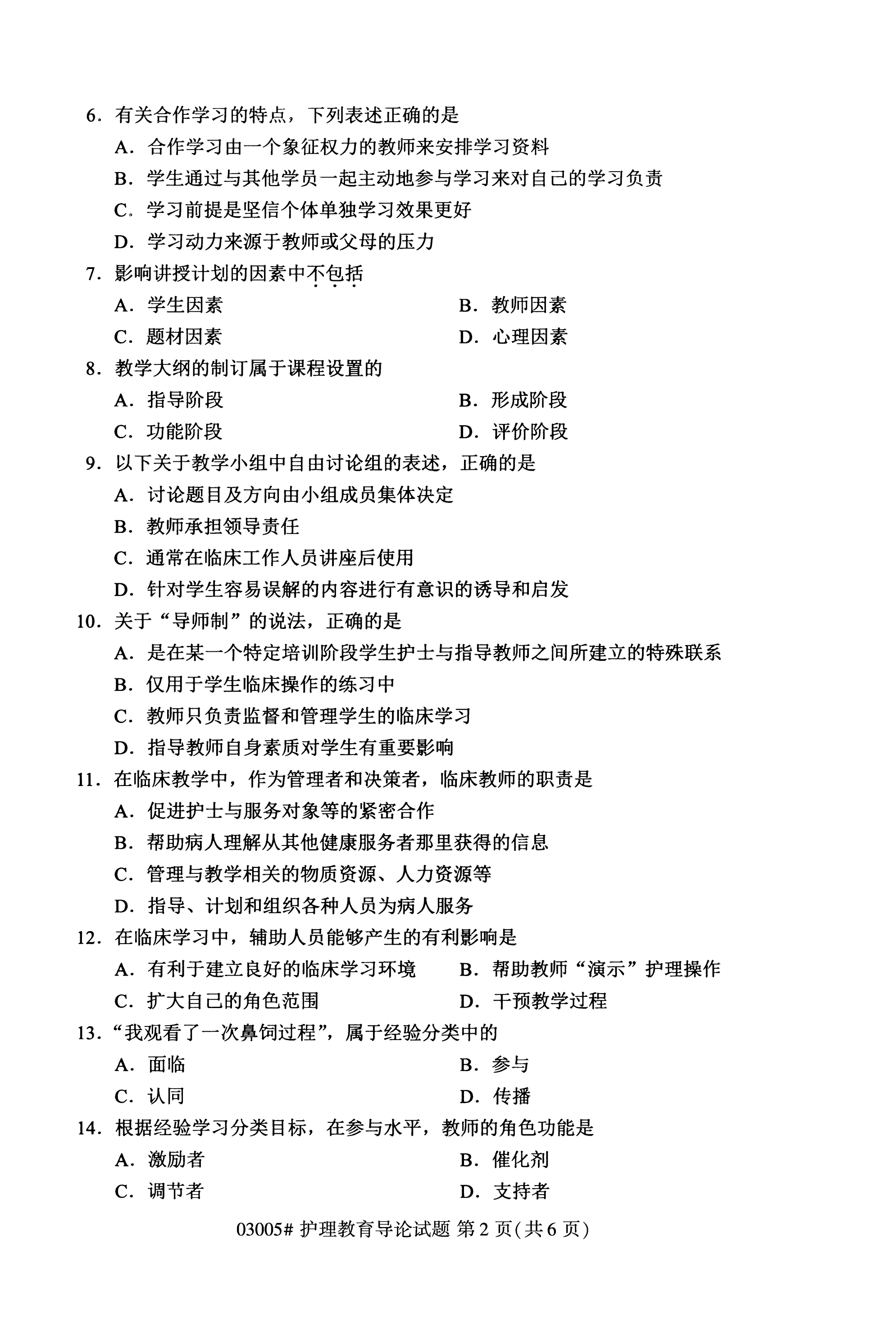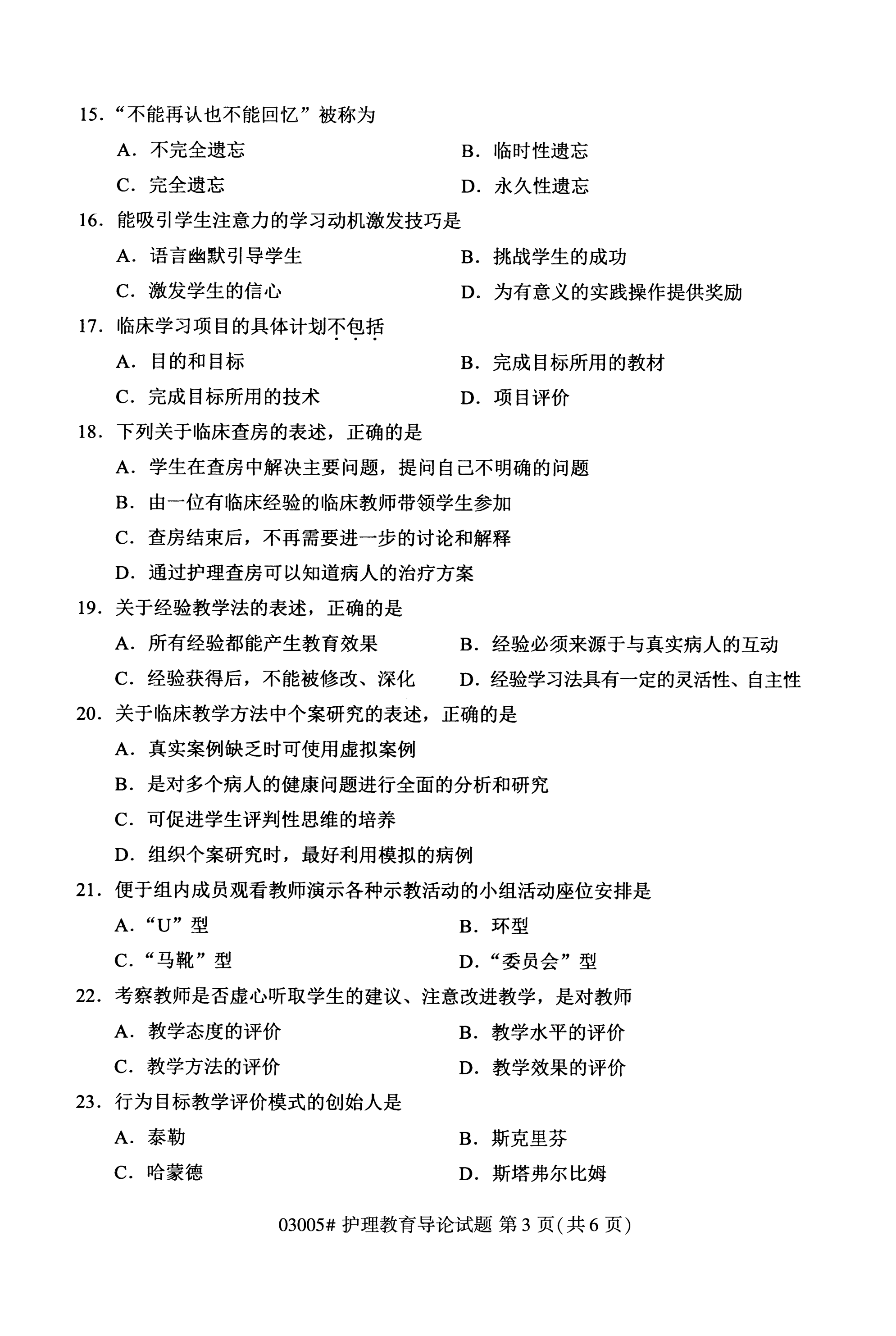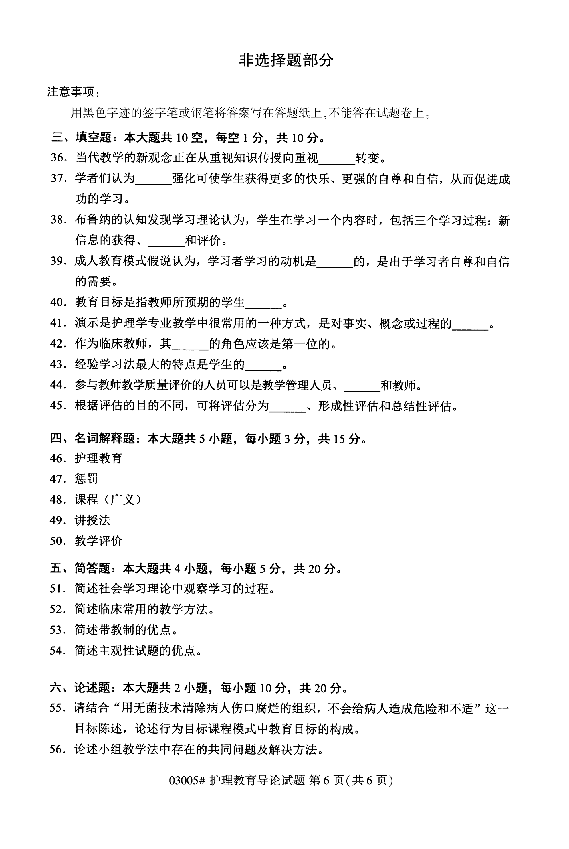 福建成人自考全國卷護理教育導(dǎo)論(03005)試題