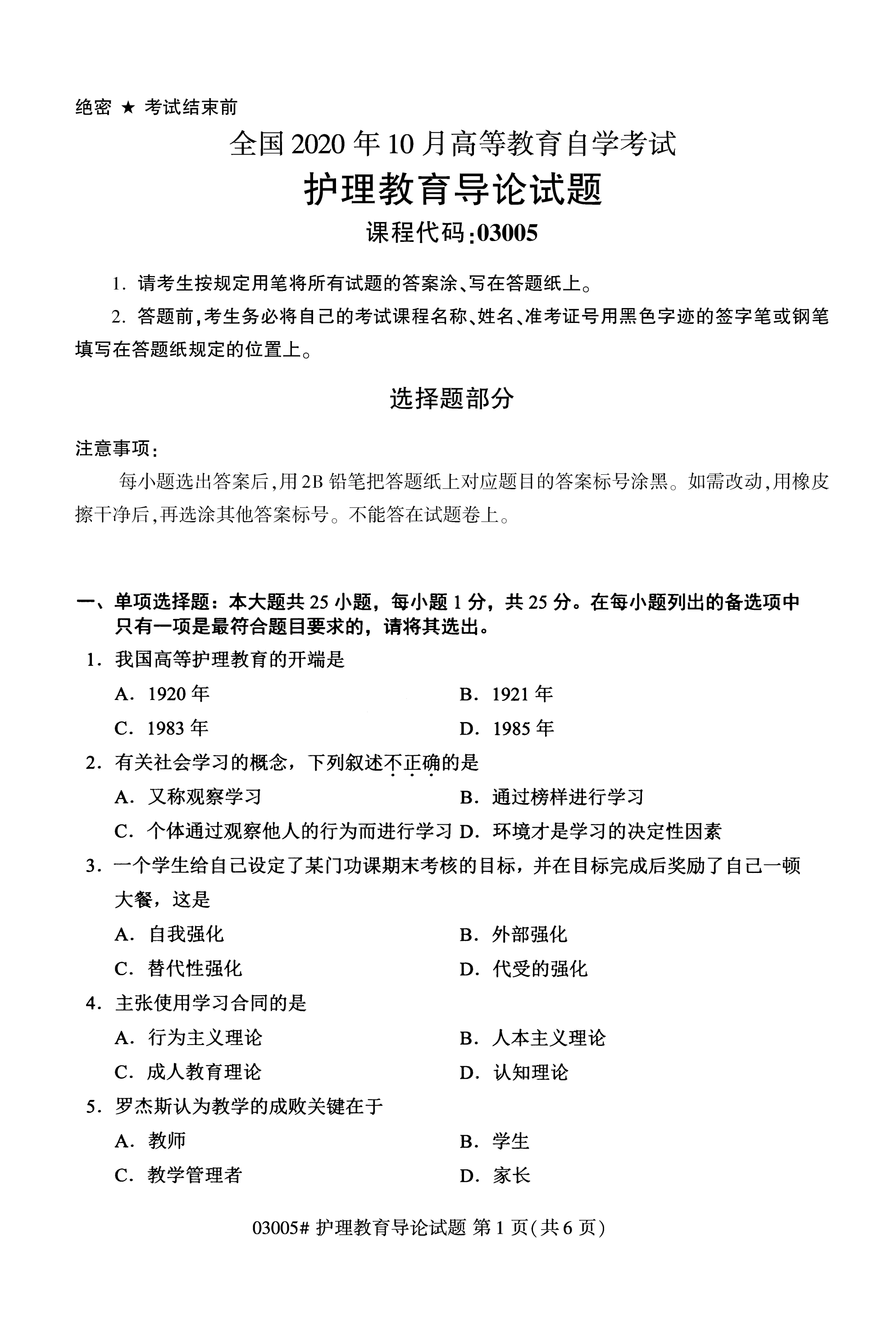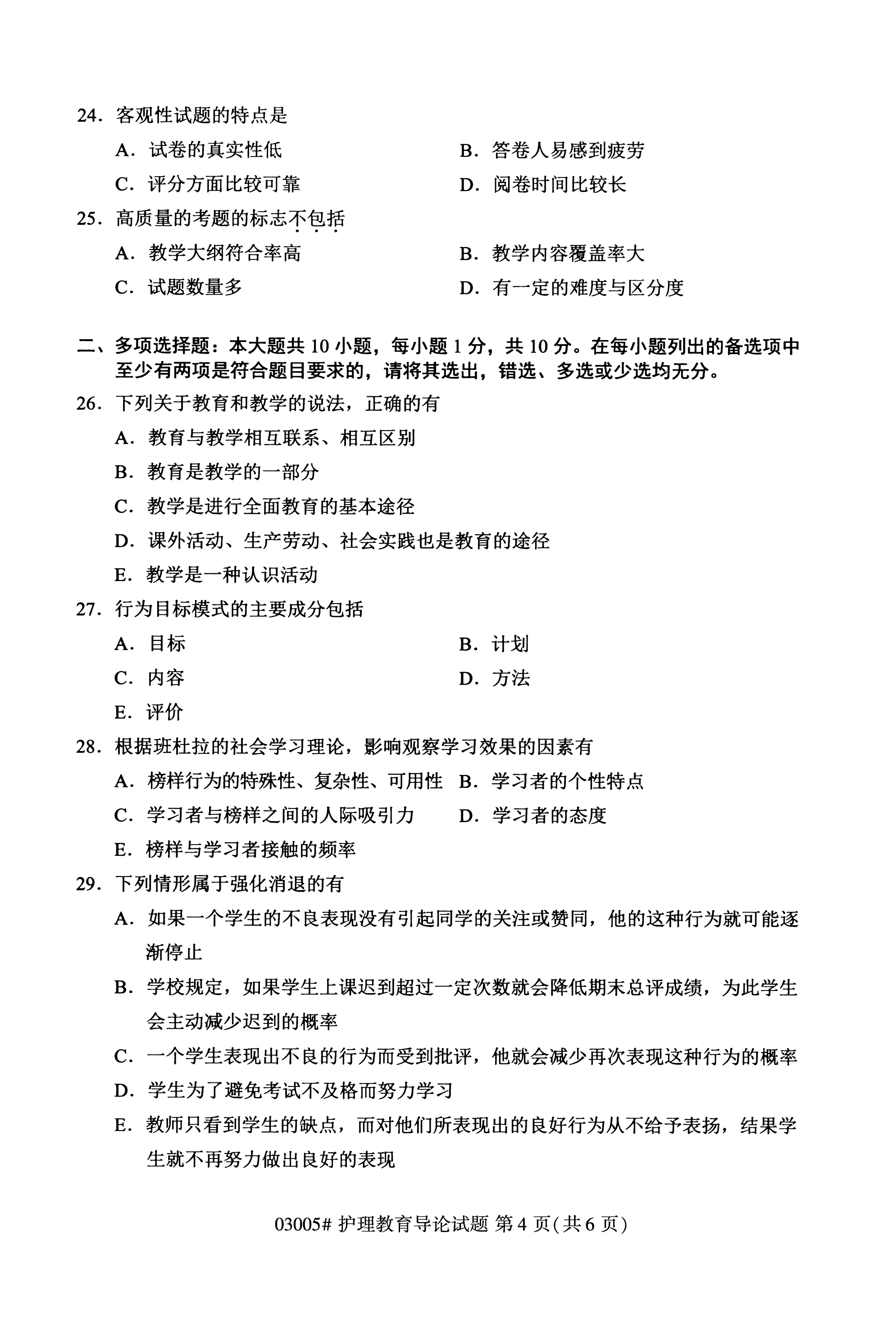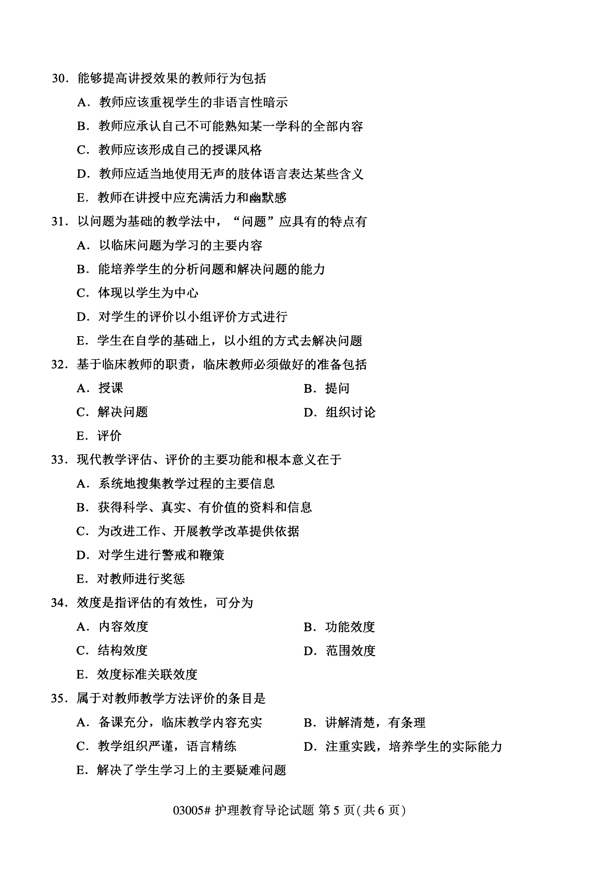 福建成人自考全國卷護理教育導(dǎo)論(03005)試題
