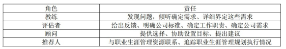 3 、人力資源部門的責(zé)任:人力資源部門應(yīng)提供與職業(yè)發(fā)展有關(guān)的培訓(xùn)與開發(fā)機(jī)會的信息或建議,同時還應(yīng)該提供專業(yè)服務(wù)。